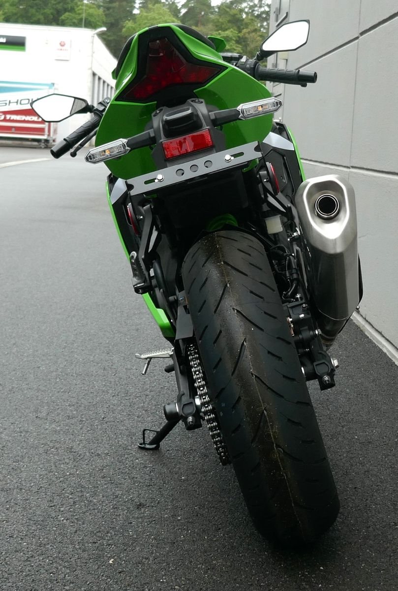Mit der Ninja ZX-4RR wurde eine spektakuläre 400-cm-Revolution eingeläutet. Ihr neuer Reihenmotor mit vier Zylindern erreicht nie dagewesene 57 kW (77 PS). Das leichte und ausgewogene Handling, verbunden mit perfekt abgestimmter Motorleistung, macht die Ninja ZX-4RR zu einem Leistungssportler.